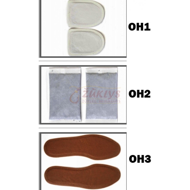 - OH3 - šldytuvai skirti šildyti visai pėdai, dėti reikia į batus.